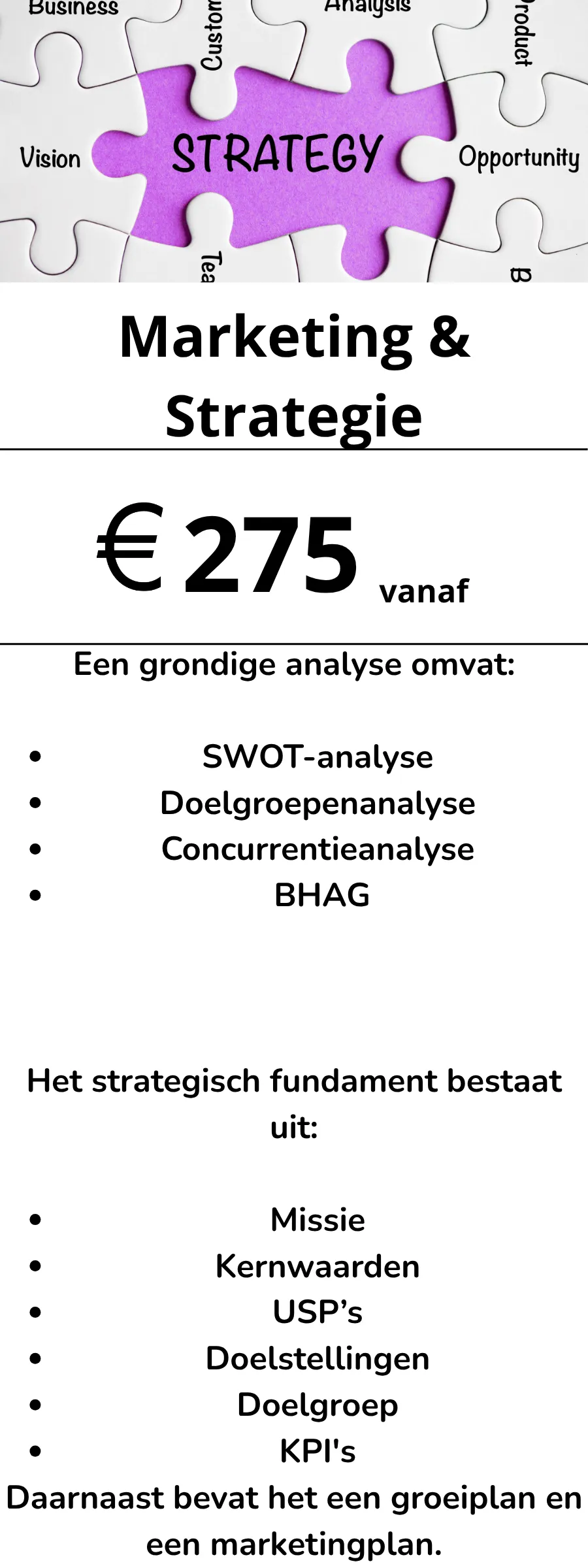 Zodra jij je aanmeldt, krijg je direct toegang tot een verhelderende video en een handige checklist om je behoeften in kaart te brengen. Als je interesse gewekt is, plannen we een afspraak in. Tijdens de intake bespreken we je antwoorden, aan de hand van ons gesprek kan ik een analyse voor je maken. We zullen samen naar de juiste strategie kijken en dan gaan we aan de slag om de gewenste resultaten te behalen.